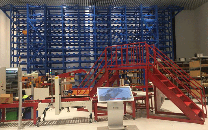 智能立體倉(cāng)庫(kù)貨架通常是組合式鋼結(jié)構(gòu)的建筑物或結(jié)構(gòu)體,貨架內(nèi)是標(biāo)準(zhǔn)尺寸的貨位空間,巷道堆垛起重機(jī)是整個(gè)自動(dòng)化立體倉(cāng)庫(kù)的核心設(shè)備,通過(guò)手動(dòng)操作,半自動(dòng)操作或全自動(dòng)操作,穿行于巷道之間的巷道中,出入庫(kù)口利用各種輸送機(jī)或AGV/RGV等自行運(yùn)動(dòng)小車(chē)對(duì)接巷道堆垛機(jī),實(shí)現(xiàn)把貨物從一處搬運(yùn)到另一處,完成存、取貨的工作。