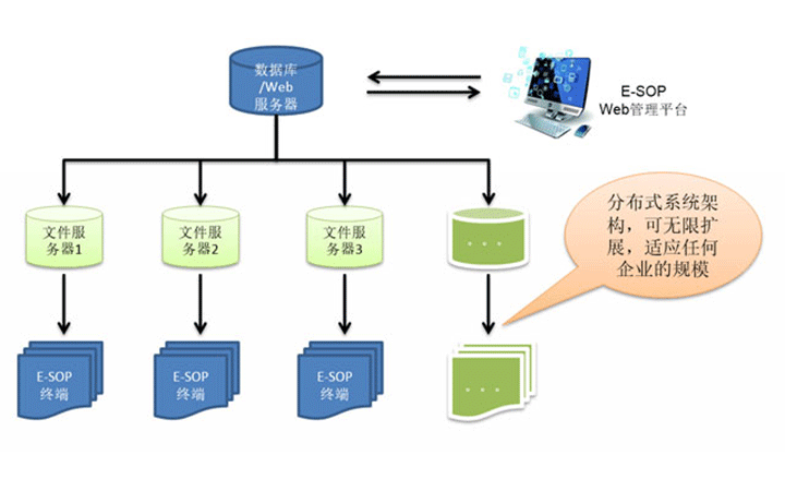 分布式的系統(tǒng)架構和可擴展的文件服務器體系讓匯興智造E-SOP適應不同大小的企業(yè),從幾十個工位到幾萬個工位,任您搭配。