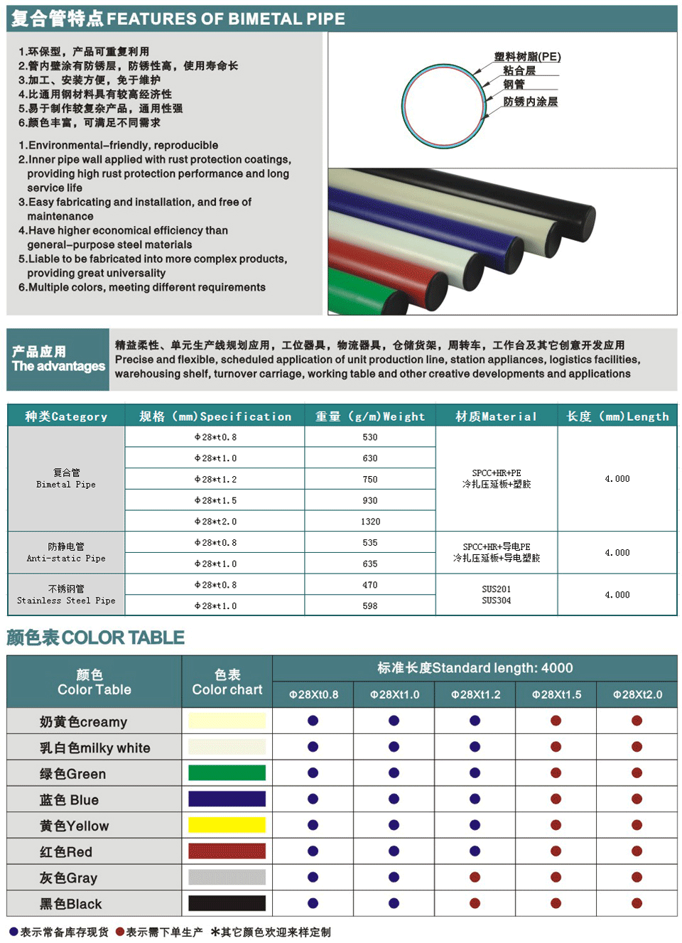 精益管,我們也經(jīng)常稱之為線棒、物流管、復合管等。是一種鍍鋅的鋼管并帶有塑料樹脂涂層。標準的精益管直徑一般是28mm,鋼管的壁厚一般在0.8mm-1.5mm之間,顏色主要為米黃色,白色,黑色,綠色等。塑膠的材質(zhì)主要以PE為主。
